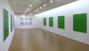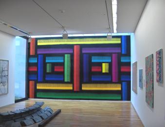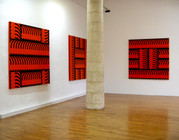 Les tableaux sont formés d’espace verticaux et horizontaux entrelacés, comme tissés les uns aux autres. Les couleurs participent de ce maillage par leurs rapports de contraste ou de dégradé. Il y a une mathématique de la couleur, un jeu d’occupation de l’espace où chaque élément doit trouver une place en fonction de ce qui l’entoure. Ce rapport de masse est fait de tensions parfois équilibrées, reposant sur des effets de symétrie et de répartition rationnelle, parfois en déséquilibre, une surface ayant pris le dessus sur la partie occupant l’essentiel du tableau. Mais une chose est sûre, ces états semblent ne jamais être que provisoires, comme si les permutations possibles se révélaient instamment nécessaires.