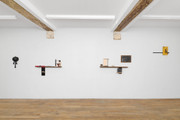 Il est toujours émouvant d’assister à une orientation nouvelle dans le travail d’un artiste. Pour la première fois, Rainier Lericolais va chercher dans son passé. Il se retourne. Un journal même fictif est toujours un brin de soi. Ici, les œuvres enclosent au moins un objet personnel, une édition ou œuvre antérieures (Maneki-Neko de Gōtoku-ji, VHS, Toupie, Tentative de peinture d’eau8, cylindre oxydé, K7…). Des pièces inconnues aussi, restées suspendues à l’atelier depuis plus d’une décade, trouvent désormais leur évidente place au sein de ses nouvelles sculptures murales. Certaines œuvres de l’exposition marquent un changement, un achèvement. À l’image du Dibbouk, légende mythique sur laquelle l’artiste travaille depuis 2020, avec une production luxuriante de dessins, peintures, reliefs, films, musiques et dont la pièce de 2024 vient symboliquement rompre la pléthore. Placer un autre temps.