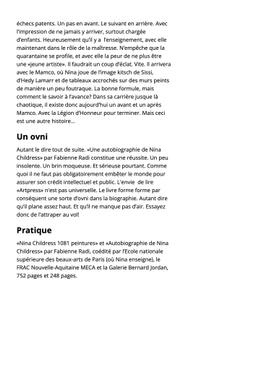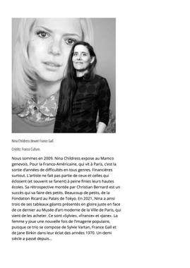 Fabienne Radi rédige l’autobiographie de l’artiste contemporaine Nina Childress
